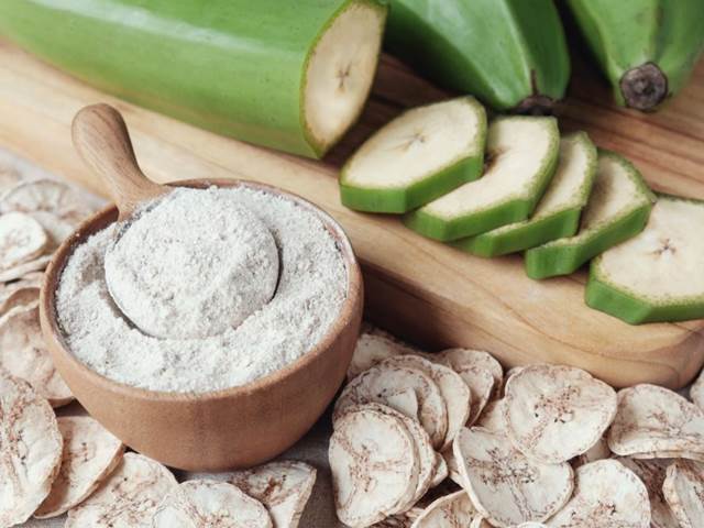 Banánová mouka je mimořádně bohatá na rezistentní neboli nestravitelný škrob, proto může diabetikům pomoci udržet správnou hladinu cukru v krvi. Rezistentní škroby jsou prospěšné také při různých dietách, chovají se při trávení podobně jako nerozpustná vláknina – prodlužují nám pocit sytosti a snižují glykemický index.