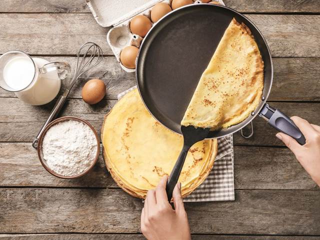 5 Rozehřejte kapku oleje v pánvi a postupně osmažte asi 10 palačinek.