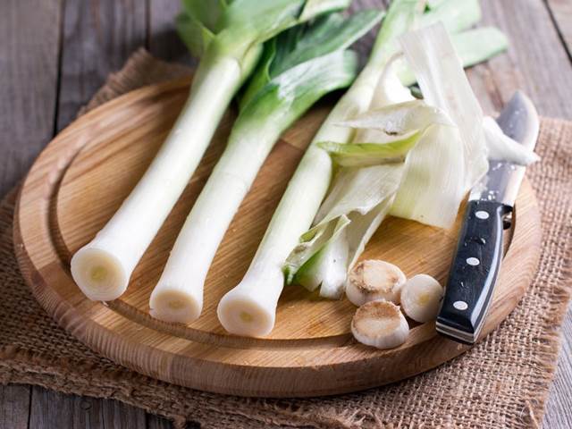 4 velké pórky, pouze bílá a světle zelená část, očištěné a nakrájené na tenké plátky