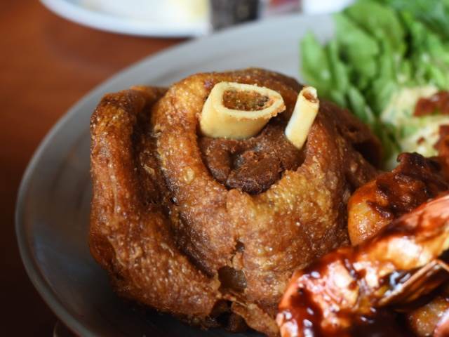 Marinované vepřové koleno dále připravíme k smažení. Prvním krokem je jeho obalení v tradiční trojobalu, které dodá křupavost a jemnost: