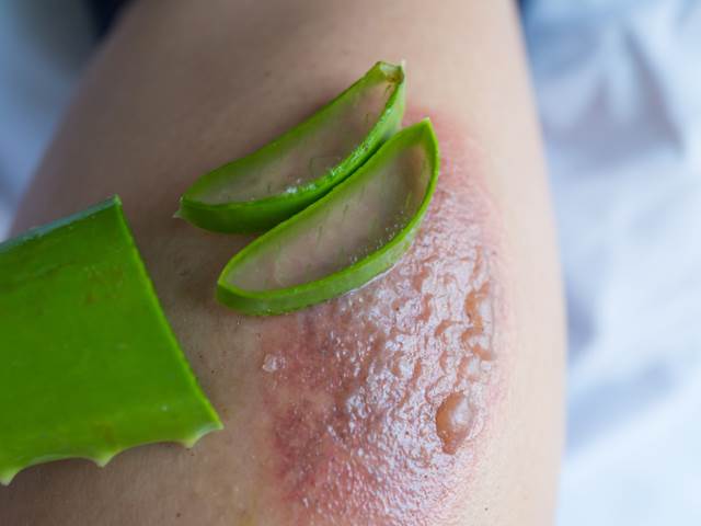 Začněte popálené místo chladit pod mírným proudem studené vody, ponořením do vody nebo obklady. A co pak? Použití aloe vera vám může pomoci se s popáleninami vypořádat, neboť tenhle sukulent je dobře známý pro své chladivé a hojivé vlastnosti. Naneste na postižené místo čerstvý gel a nechte jej asi 30 minut působit. Postup opakujte několikrát denně – do zlepšení stavu.