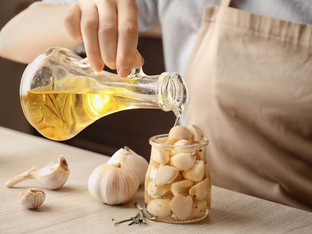 2. Kombinace s octem: Vložte nasekaný česnek do skleněné nádoby a zalijte jablečným octem tak, aby byl česnek zcela ponořený.